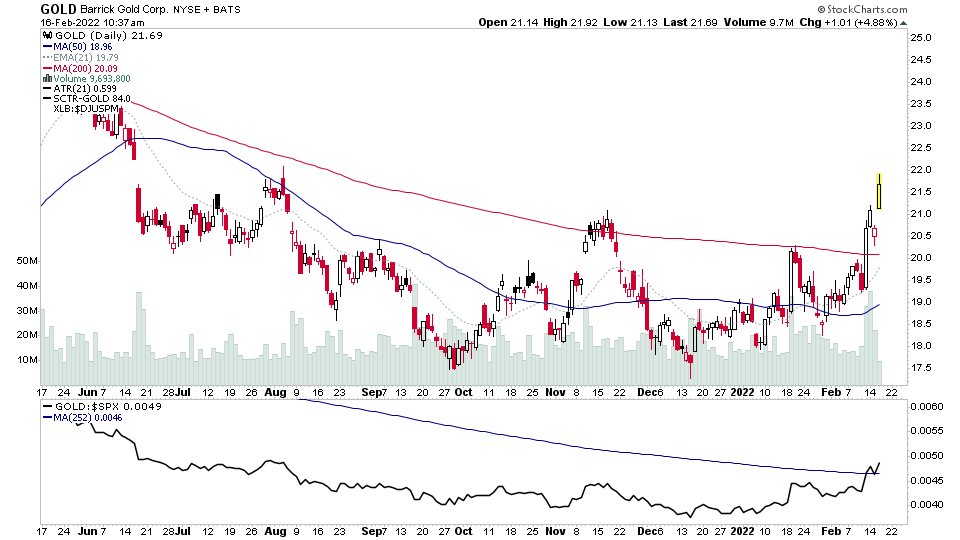 Gold miners also moving again today, + $GOLD gapping to new near term highs on earnings results