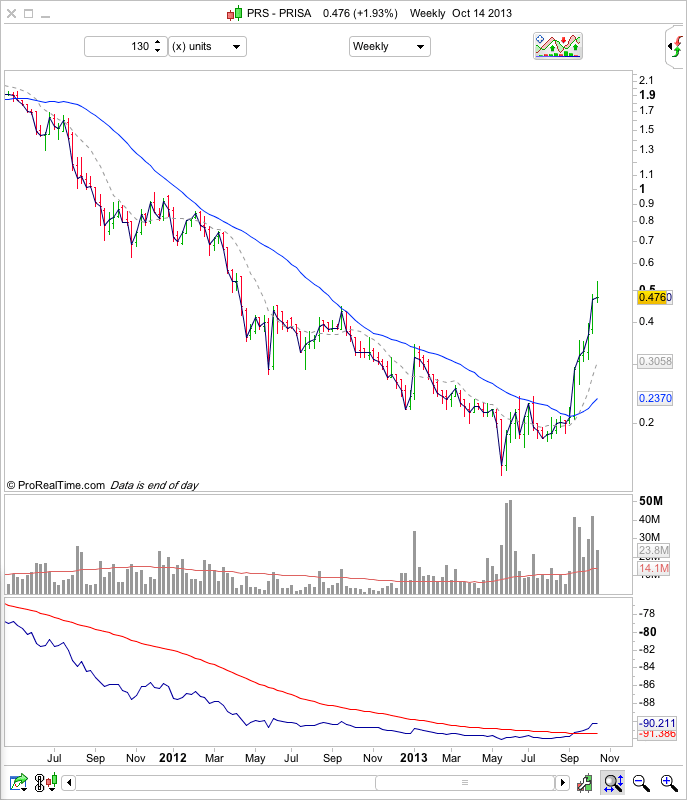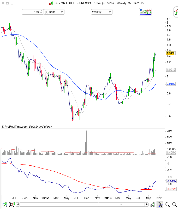 FAE is a Spanish stock that looks to be showing the Volatility Contraction Pattern that Mark Minervini talks about in his book to look for with Stage 2 continuation moves.
