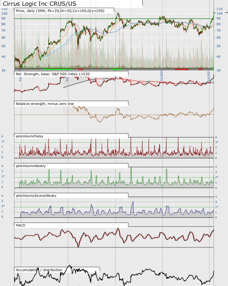 I'm not sure that the pattern is ideal, nor is there a good low risk entry point given the rapid run up before the breakout at 90. Probally a better one for traders.  Again a strong volume spike.