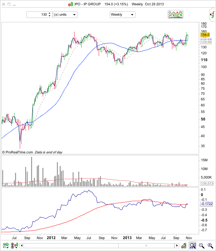 Fate does not always let you fix the tuition fee. She delivers the educational wallop and presents her own bill - Reminiscences of a Stock Operator. RE: Watchlist - Traders methodI posted PACB the other day. It has pulled back further. I am looking at a potential trade. The closest possible stop would be $3.84 just below the trendline and low price on 9/25 with huge volume. The next place down would be $3.32 which is the swing low on the weekly and coincides with the 30 week MA. That looks like a much better stop but is 18% away. $3.84 is about 5% away. (2013-10-30, 01:02 AM)goodtyneguy Wrote: HAWK.L looks primed for an imminent break out and has a very nice look about it, but I would say that as I already have a position in this one, so get buying....please Thanks for the chart, goodtyneguy. HAWK is looking like it wants to break through. On my ProRealTime charts it shows the price bouncing off horizontal resistance from the previous high at 12.00. Supply came into the market to meet demand, but will the supply/shorters be there the next time the price hits 12.00...lets wait and see ![]() Tryst gbarbs, do you use Think or Swim software for your charts? If so, how do you find it? And does it allow trading UK based equities? I've been recommended this by someone I know who also traders - although he only trades in the Futures market. Thanks Thanks for the charts, isatrader, esp. the LSE based ones. I do like the look of IPO and LOQ...i'll be keeping an eye on these over these coming days. Tryst RE: Watchlist - Traders method(2013-10-31, 12:59 AM)Tryst Wrote: Thanks for the chart, goodtyneguy. My pleasure. In the past TOS did not take UK customers and as far as I am aware that has not changed with their new business relationship with T D Ameritrade. Their UK arm is T D Direct and if I am correct this was T D Waterhouse before T D Ameritrade came on the scene. In fact their web site looks very familiar. I had an ISA with T D Wasterhouse for a short period of time as did other disgruntled customers. Without going into detail I was pleased to get out. In any case if it's a decent integrated charting package you are after it would cost you £200 per quarter for their Pro charting offering if your trades were less than 25 for the period. This is probably the package gbarbs and other US and Canadian citizens are offered for free or perhaps a small data charge. A cheaper alternative is to take a look at idealing.com. They have a free delayed data (15 mins) charting package and commissions are a little cheaper than Selftrade. There is an option to get live LSE data and trade directly through the order book for a £66 per year sub. There are also options to trade US, Canadian and european stocks. They offer an ISA and SIPP account. I have never had an account with them but I have only ever heard good things about them other than they have a £60 account closure fee. It's something I would have looked into if I had just been using the investor method with perhaps the occasional trader trade but I think my next move will be to Interactive Brokers, but that's another story. RE: Watchlist - Investor methodNCIT has been making a Stage 1 base for the last year, and is currently in Stage 1B.