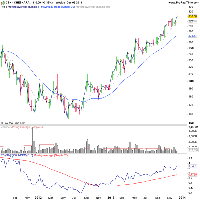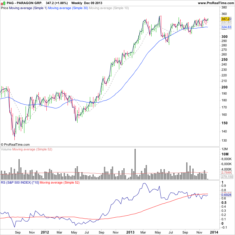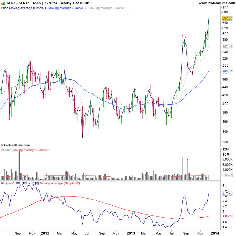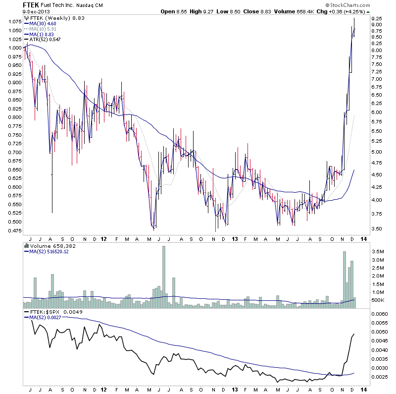 I highlighted FTEK on the 12th November http://stageanalysis.net/forum/showthrea...90#pid2190 in the watchlist, following a strong initial Stage 2 continuation move on heavy volume relative to it's average weekly volume. Since then it's powered 57% higher for a further four weeks on continuing heavy volume and strong relative performance versus the market. So this is a candidate imo currently for a potential additional buy on the first "significant" pullback back towards the 10 week moving average and support, if the pullback has contracting volume.