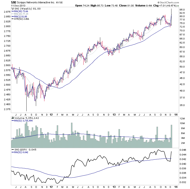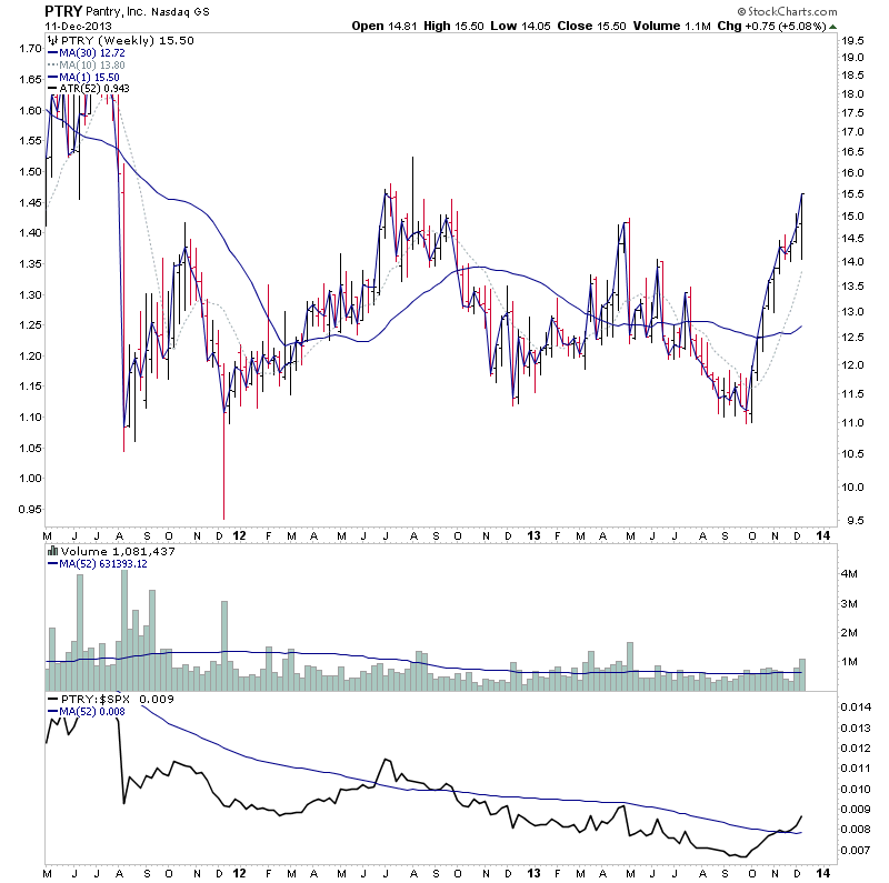 CYTR is attempting a Stage 2A breakout on positive news for a new cancer drug they are developing called Aldoxorubicin. It had a massive spike in volume, 17 times the weekly average, relative performance has moved back above the zero line once more, and it's cleared weekly ichmoku cloud resistance. Attached are the charts.