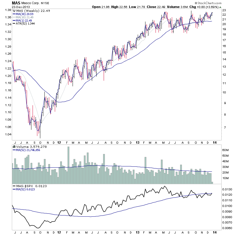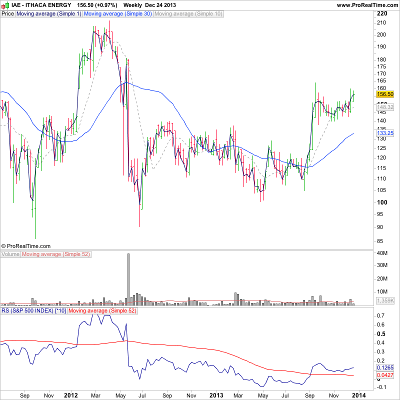 A theme that's had a strong run over the last year is the US discount brokers, which with the return of more retail investors could still have further to go into 2014 and so a possible area to watch for a pullback. Attached is the long term monthly charts of ETFC, AMTD, SCHW and IBKR which show that relative performance has been very strong versus the S&P 500, but volume has not found the sector yet.