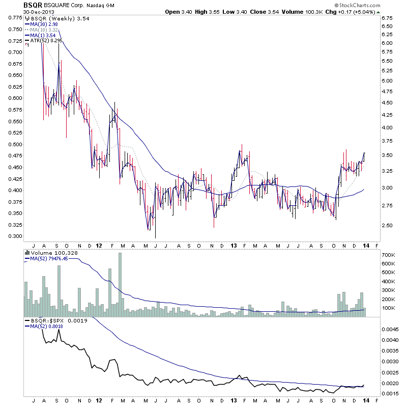 I highlighted BSQR a few weeks ago on the thread http://stageanalysis.net/forum/showthrea...62#pid2462 and today it made a strong move up with more than the average weekly volume in a single day towards a potential 1st Stage 2 continuation breakout. Relative performance has moved above the zero line and it's cleared the majority of resistance and could close the month back above the 30 month MA for the first time in many years. Attached are the charts.