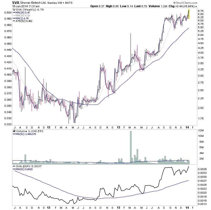 SVA is attempting to make a intraday Stage 2 continuation move on strong relative volume and strong RS. Attached is the charts.