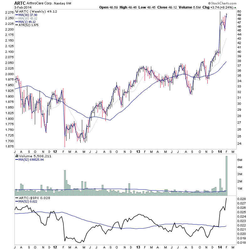 Relative performance is also lining up for Stage 2A breakout as it has moved above the flattening zero line and short interest has declined from over 9 days in August 2013 to only 1 day currently. So this looks to have some potential. Attached is the charts.