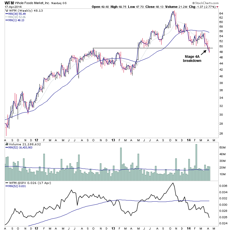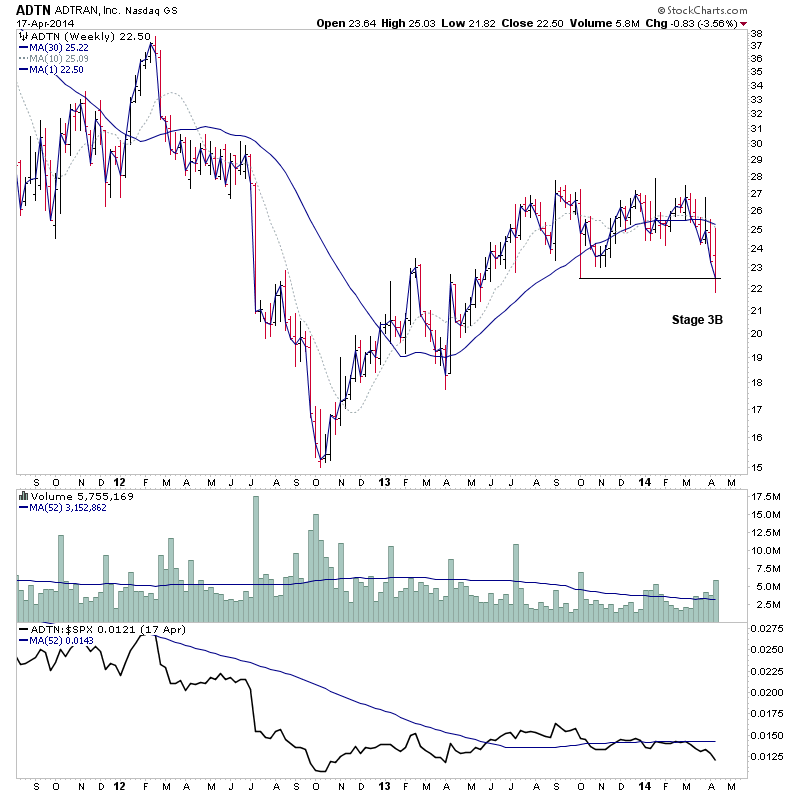 Even though it was a positive week in the market there was still a number of late Stage 3B and early Stage 4A breakdowns that came up on the watchlist in the subscriber section.