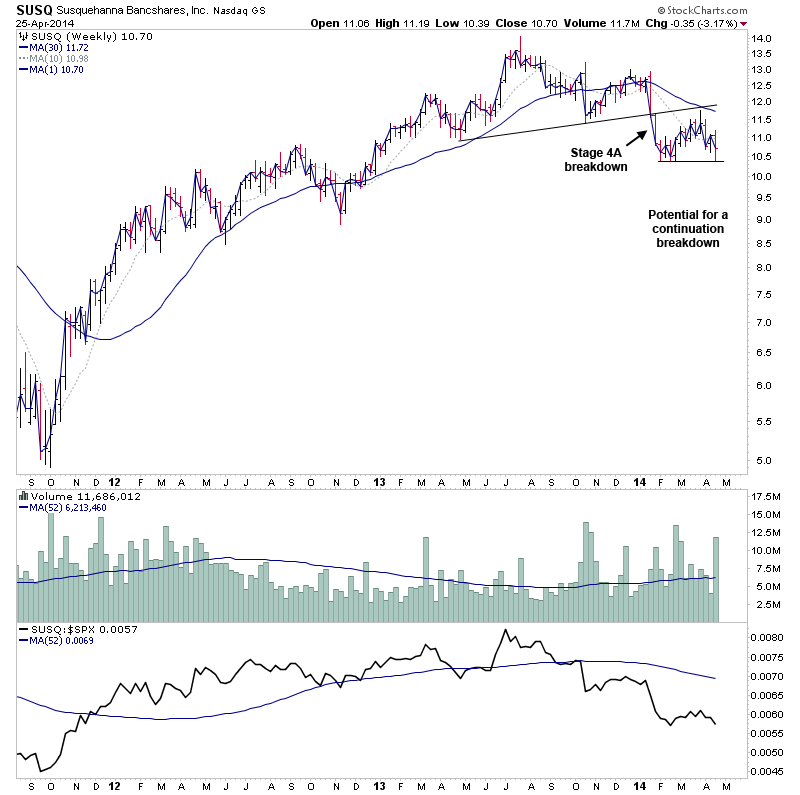 (2014-04-21, 12:10 AM)isatrader Wrote: Even though it was a positive week in the market there was still a number of late Stage 3B and early Stage 4A breakdowns that came up on the watchlist in the subscriber section.