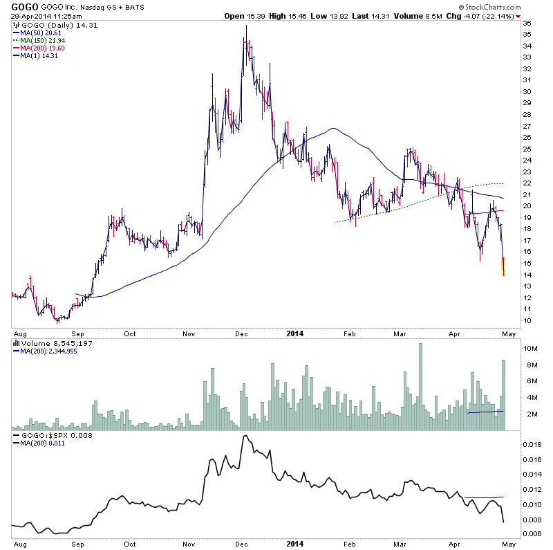 A few US stocks intraday with strong negative volume and deteriorating price action for the short watchlist - GOGO, UACL