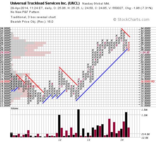 UACL - Stage 3B, watch for a breakdown below the February swing low for a move into Stage 4A.