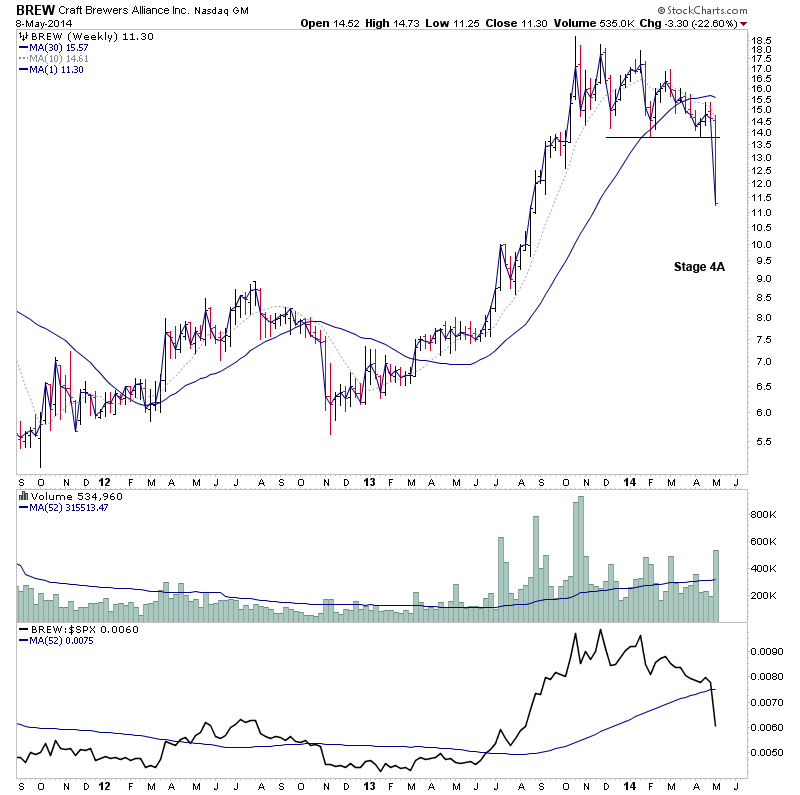 Some new additions for the short watchlist - FLDM (Stage 3A, but early sharp breakdown), BREW (Stage 4A), ICE (Stage 3), NPSP (Stage 3), AMZG (Stage 3B), ANDE (Stage 3A)