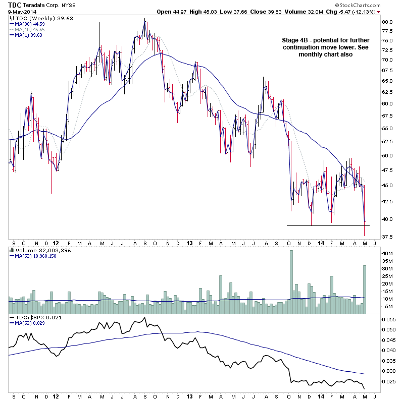US stocks for the short watchlist - TDC (Stage 4B), BCEI (Stage 3B), FLDM (Stage 3A), ANDE (Stage 3A), ATLS (Stage 4), BSX (Stage 3A), SYMC (Stage 4), AIRM (Stage 3), WPPGY (Stage 3)