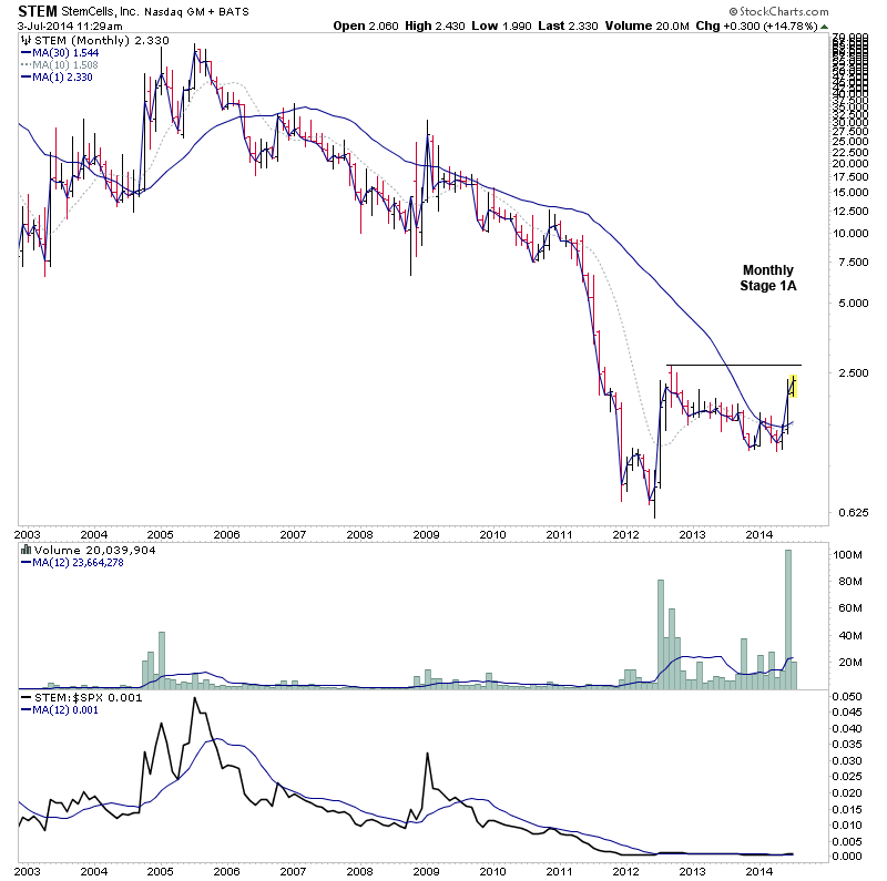 STEM - I highlighted it's Stage 2A breakout attempt a few weeks back on 19th June here: http://stageanalysis.net/forum/showthrea...16#pid4716 which it completed and is now attempting to move higher again after consolidating for a week.