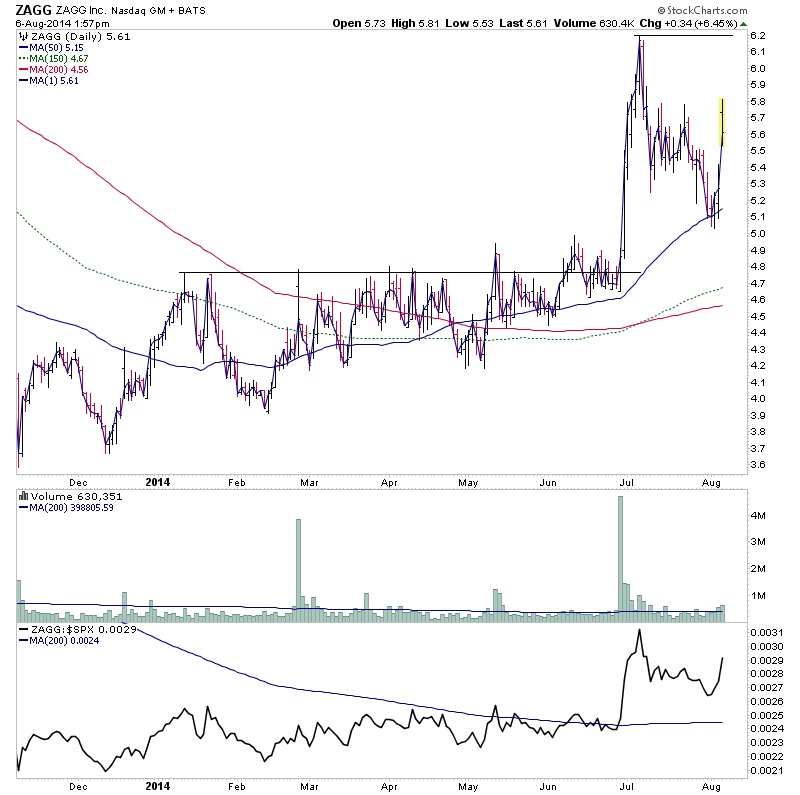 ZAGG - broke out into Stage 2A back in June, but was a breakout into resistance, as shown by the ichimoku cloud on the weekly chart. It's now having it's first pullback and so watch for a continuation breakout attempt above the resistance.