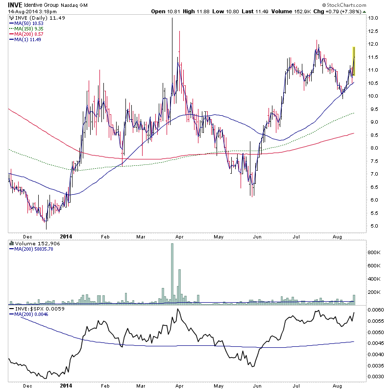 INVE - Stage 1B. Watching for a potential breakout attempt. Monthly attempting to move into Stage 1A. needs to close the month above the 30 month MA if it makes the weekly Stage 2A breakout.