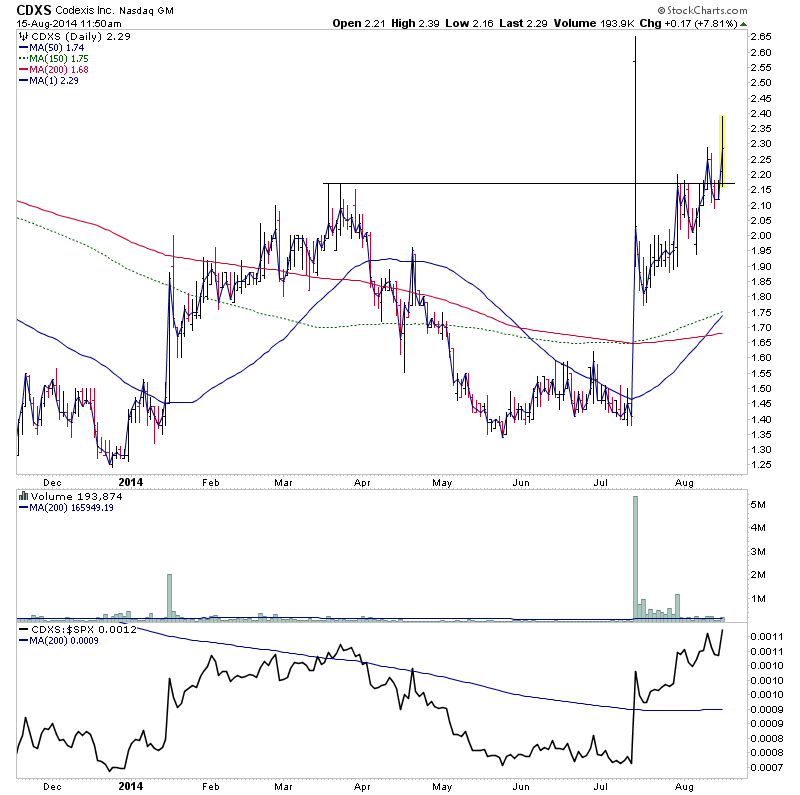 CDXS - This has been highlighted numerous times recently, but today it's attempting to breakout into Stage 2A, but the volume needs to double by the close of Friday’s trading to meet the week 2x average volume requirement. Monthly also attempting to move up a Stage into Stage 1A.