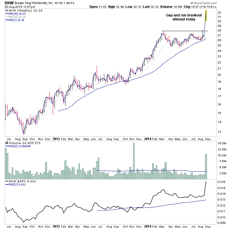BKW - Gap and run Stage 2 continuation breakout attempt today.