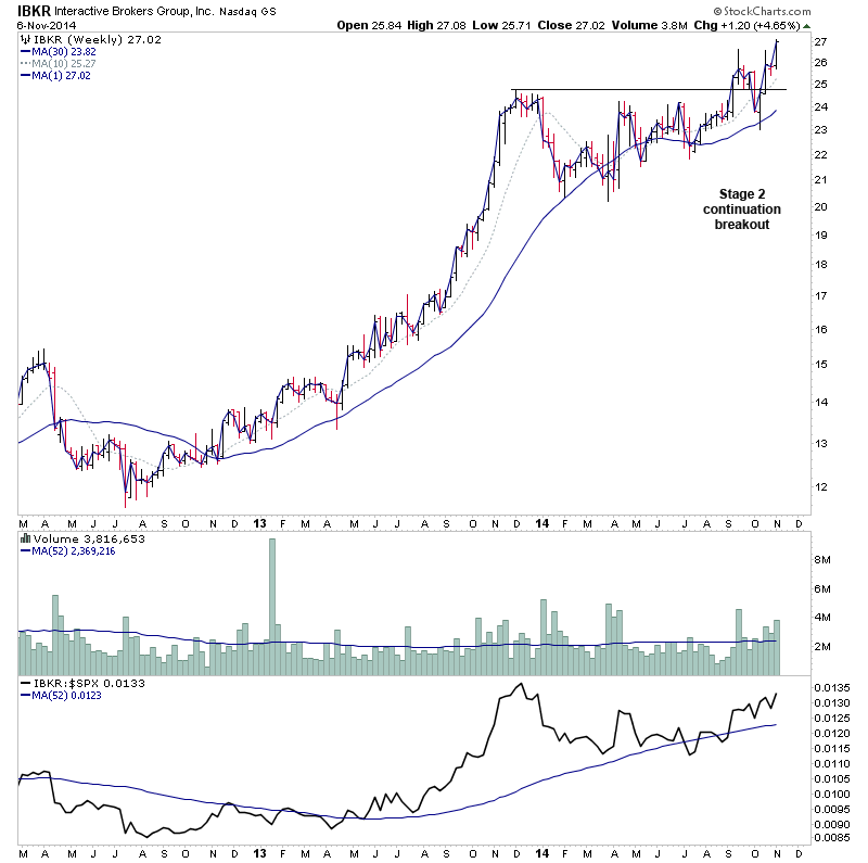 IBKR - Stage 2 continuation breakout on strong relative volume