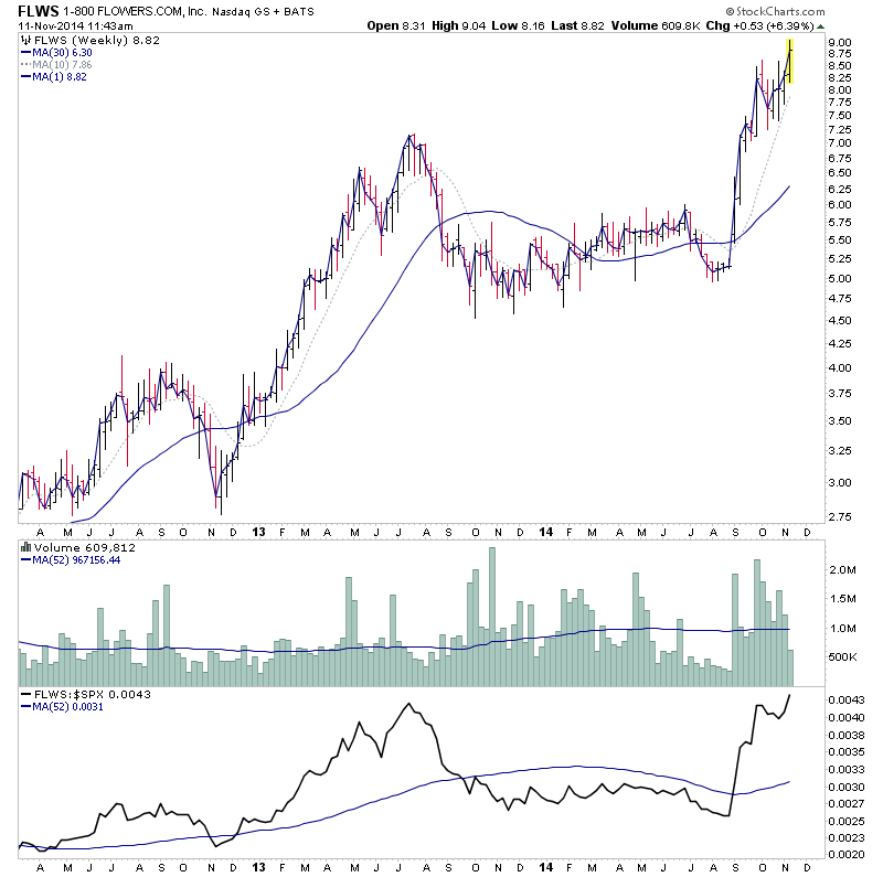 It's come a long way already in a short time, as is 144% above the low from early May and hasn't had a consolidation since July. So unless the volume significantly improves then there's chance of a pullback into the range or a consolidation above it as it's not an ideal breakout and has no near term support due to it's early breakout. So personally I'd be watching for how it reacts once it makes it's first significant pullback to towards the 50 day MA / 10 week MA. i.e. does volume contract on the pullback; does hold at or above the 50 day MA etc. So all the usual stuff we look for with the method.