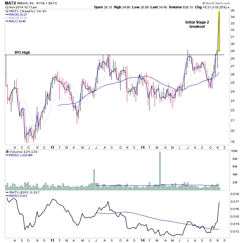 MATX - Gap breakout to attempt to move into initial Stage 2A since IPO