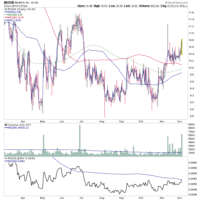 Although a very negative day with the small and mid cap stocks taking a beating, I thought I'd highlight a potential candidate for a pullback entry that only recently moved into early Stage 2 on strong volume interest.
