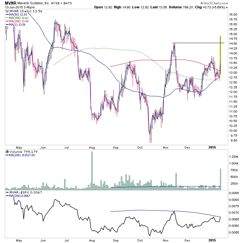 MVNR - Stage 1 developing in it's primary base since the IPO. Early breakout attempt today which has pulled back with the market sell off