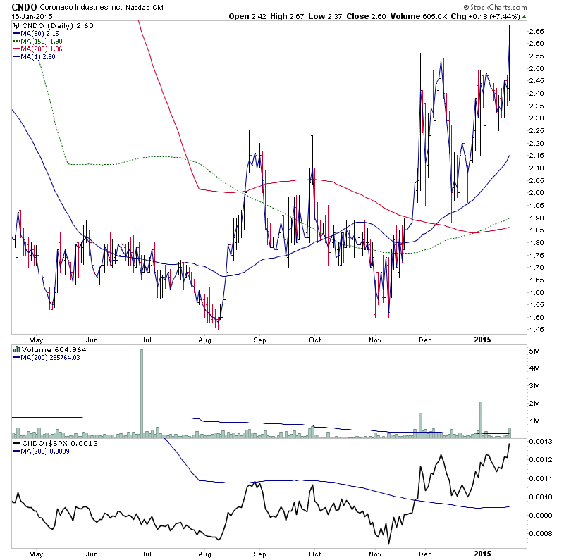 Fate does not always let you fix the tuition fee. She delivers the educational wallop and presents her own bill - Reminiscences of a Stock Operator. RE: US Stocks - Watchlist and Discussion (Premium)CNDO - Making it’s initial Stage 2 continuation attempt, with Relative performance strengthening above a flat zero line. However volume is still fairly weak and it is still under a large amount of resistance and has potential trapped investors from when it gaped down in late 2013, and so they might add to supply as they try to get out at better prices, although volume has dried up significantly as so the majority might have exited during the initial bounce from the lows as volume was much higher then.