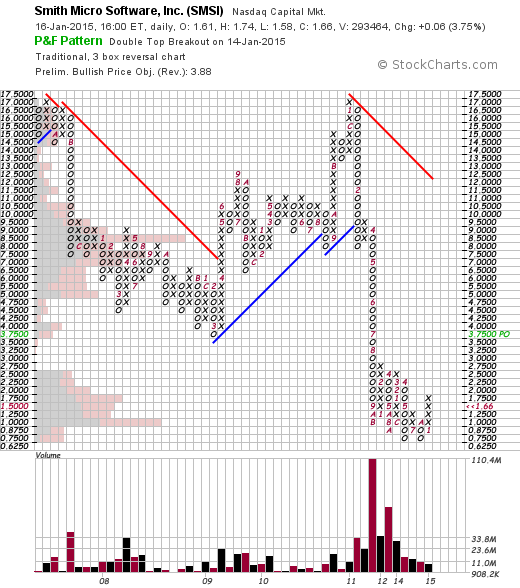 Fate does not always let you fix the tuition fee. She delivers the educational wallop and presents her own bill - Reminiscences of a Stock Operator. RE: Investor Method WatchlistSMSI - Stage 2A breakout on 5.36x the weekly average volume. The monthly chart is back above the 30 month MA and continuing to develop a monthly Stage 1 base. On the weekly it's an early breakout from a small base, and has moved 100% in two weeks, and so would likely need to wait for it to pullback/consolidate and see how it behaves. But an interesting micro cap breakout with large player volume coming in according to the effective volume data on chartmill.