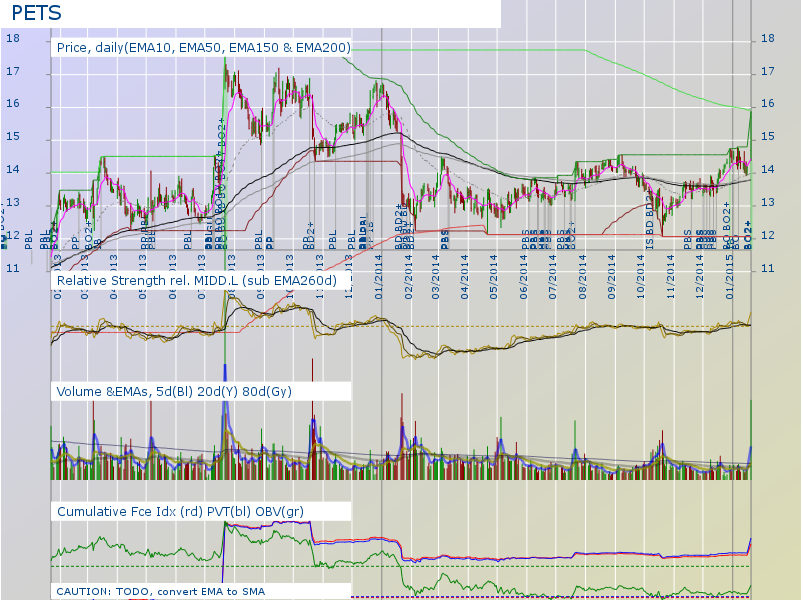 Fate does not always let you fix the tuition fee. She delivers the educational wallop and presents her own bill - Reminiscences of a Stock Operator. RE: US Stocks - Watchlist and Discussion (Premium)CNDO - Making it’s initial Stage 2 continuation attempt, with Relative performance strengthening above a flat zero line. However volume is still fairly weak and it is still under a large amount of resistance and has potential trapped investors from when it gaped down in late 2013, and so they might add to supply as they try to get out at better prices, although volume has dried up significantly as so the majority might have exited during the initial bounce from the lows as volume was much higher then.