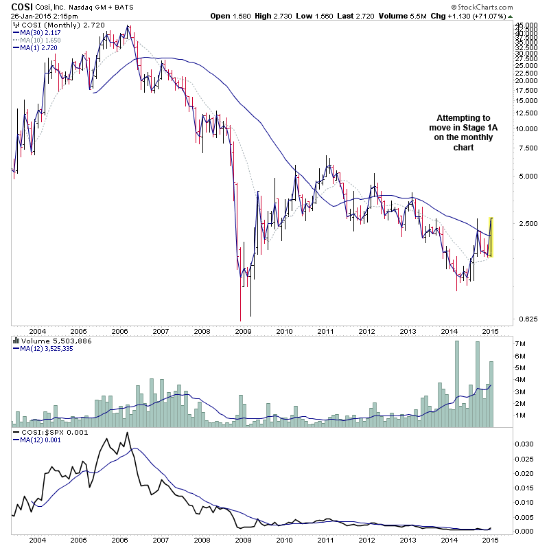 COSI - Attempting to make a Stage 2A breakout with strong relative volume intraday
