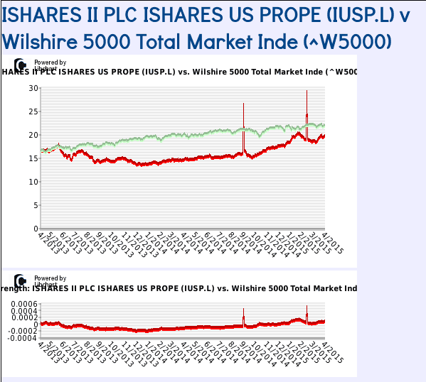 I thought it might be interesting to plot the relative strength of US Treasury Bonds and US property against US Equities (Wilshire 5000).