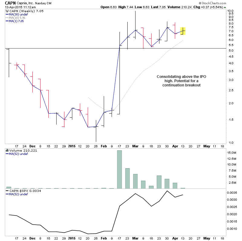CAPN - Consolidating above the IPO high. Potential for a continuation breakout