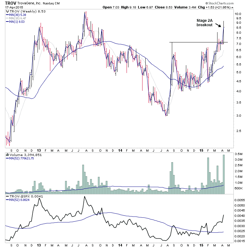 A few for the US long watchlist - TROV (Stage 2A), AVEO (Stage 1), VIMC (potential for a continuation - originally highlighted at $2.70 on 17th Jan 2014)
