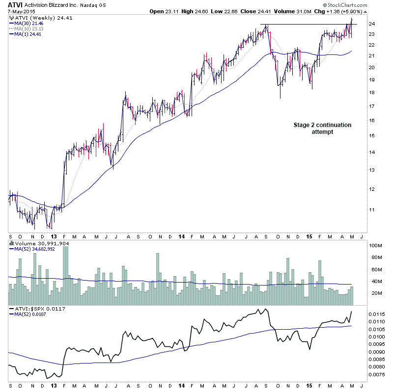 RE: US Stocks - Watchlist and Discussionyou are right isatrader, it doesn´t worth to track gold stocks at the moment. RE: US Stocks - Watchlist and Discussion (Premium)Some of the recent shares mentioned here have pulled back significantly, including SQNM and CY. RE: US Stocks - Watchlist and Discussion (Premium)(2015-05-07, 05:30 PM)shaunattwood Wrote: Some of the recent shares mentioned here have pulled back significantly, including SQNM and CY. CY is below the 30 week MA currently and 50 day MA. So personally I'd be wary until it can get back above those. Or make a Stage 2A breakout on the intraday 2 hour chart, which would be a close above the 13.8 area imo. See attached RE: US Stocks - Watchlist and Discussion (Premium)I've been a bit quiet this week due to a heavy work load. So here's some for the US long watchlist from Thursday scans - WIX (Stage 2A attempt), EMKR, HUBS, PAYC, ATVI, ATSG, CHGG, ACLS, PRMW