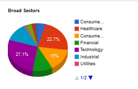 - 27% is technology sector (sectors like semiconductors, telephone, internet, software, computers... overall favored sectors)