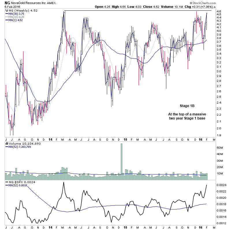 Novagold Resources is dual listed in Canada (NG.TO) and the US (NG), and is one of the best looking gold stocks with regards to Stage Analysis currently imo.