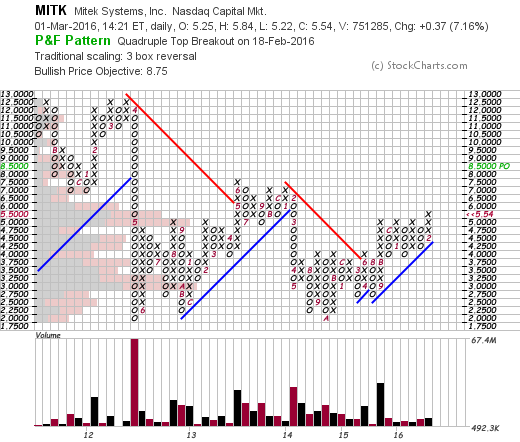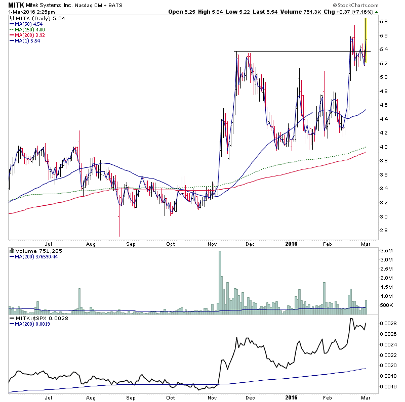 MITK - Attempting to make it’s initial Stage 2 continuation breakout. Strong relative performance and volume increase since the Stage 2A breakout in November.
