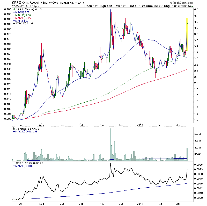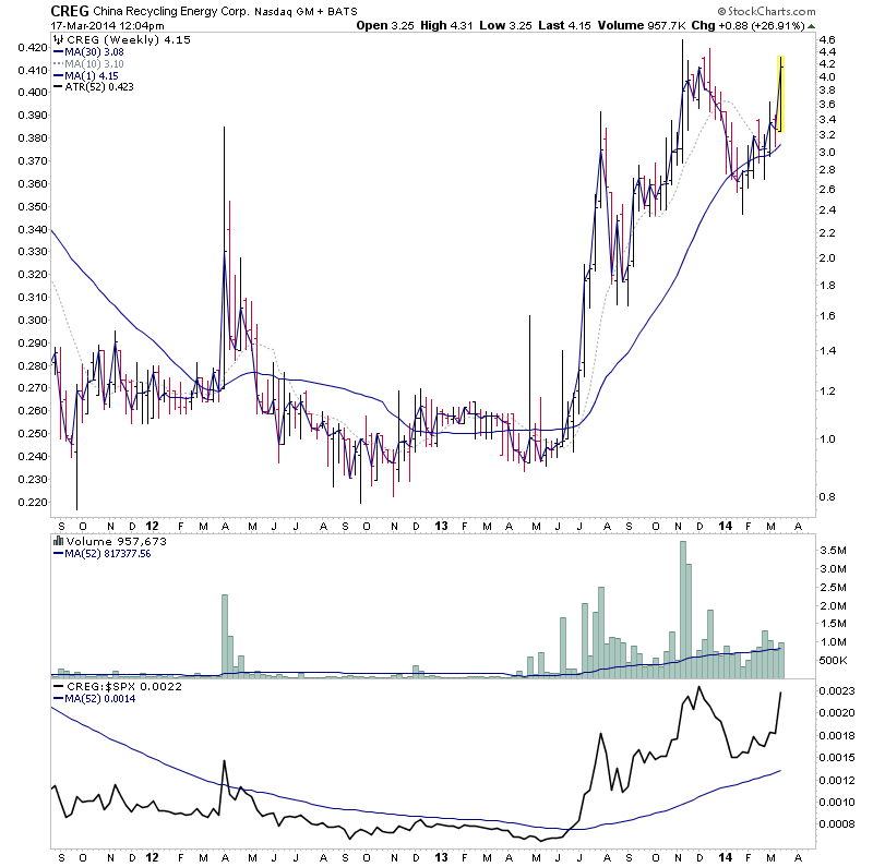RE: Watchlist - Traders method - isatrader - 2014-03-16 Single digit midgets for the watchlist - CPE, CIDM, AXAS, WSCI RE: Watchlist - Investor method - isatrader - 2014-03-16 Single digit midgets for the watchlist - ISR, MNGA, OCLS, JVA, EGY, TINY RE: Watchlist - Traders method - isatrader - 2014-03-16 Potential continuation moves - MFRM, TAHO, PPP RE: US Stocks - Intraday Watchlist and Discussion - isatrader - 2014-03-17 A few strong relative volume movers of interest today: KNDI is attempting another continuation move on very strong relative volume following strong fourth-quarter revenue and earnings CREG is a single digit midget close to a potential Stage 2 continuation breakout which would take it to three year highs. See the monthly chart for a better view of the relative volume expansion over the last year. RE: Watchlist - Traders method - isatrader - 2014-03-18 Single digit midgets with potential for continuation moves - USEG, CREG, CBAK, GPRC RE: Watchlist - Traders method - isatrader - 2014-03-18 Potential continuation moves with strong relative volume - KNDI, YOD, USMO, SHEN RE: Watchlist - Traders method - isatrader - 2014-03-18 A few Stage 3B/4A stocks for the watchlist - CVX, CTRX, SBGI, LKQ RE: US Stocks - Intraday Watchlist and Discussion - isatrader - 2014-03-18 A few for the early intraday watchlist - FF, FLML, HTM (monthly Stage 2A), CAAS |