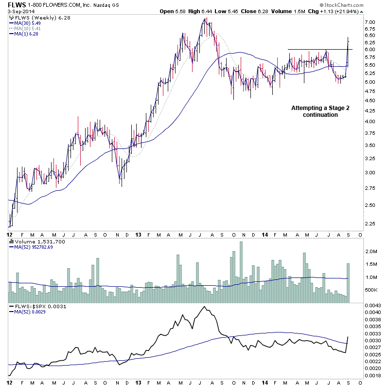RE: US Stocks - Watchlist and Discussion (Premium) - bluemosaic - 2014-09-02 Just looking at Facebook trader set up. Weekly and daily charts below Thoughts welcomed! 1. Stage 2 2. Weekly - 10 week MA rising, price above strong 30 week MA,volume contracted on price pull back. 3. looking for break of 76.7/76.8 on high volume on daily chart. Does anyone look at the IBD/investors.com rating for stocks as well ? RE: US Stocks - Watchlist and Discussion (Premium) - bluemosaic - 2014-09-02 Would be interested in thoughts on NXP Semiconductors: Stage 2 Price broken to new high today on increased volume Mansfield RS above zero and pointing up RE: US Stocks - Watchlist and Discussion (Premium) - isatrader - 2014-09-03 A number of stocks for the watchlist tonight as I've not been around today, so I'll split them into a few posts - Stage 2A breakout attempts in AXTI, MAGS AXTI MAGS RE: US Stocks - Watchlist and Discussion (Premium) - isatrader - 2014-09-03 Some stocks showing potential for continuation attempts - UEPS, DRAD, FLWS, ARWR UEPS DRAD FLWS ARWR RE: US Stocks - Watchlist and Discussion (Premium) - isatrader - 2014-09-04 A few Stage 2 continuation attempts for the US watchlist intraday - CBK, MEI RE: US Stocks - Watchlist and Discussion (Premium) - isatrader - 2014-09-12 I'm back. It's been a long week as I had to go out and work at a clients office on a project, but it's finally over, so I'm back at my desk and so will hopefully get back into the normal flow. One for the US watchlist today attempting to make it's first Stage 2 continuation breakout is NOR. Attached is the charts. RE: US Stocks - Watchlist and Discussion (Premium) - isatrader - 2014-09-12 TAM - Making a Stage 2 continuation away from a large primary base on heavy volume. RE: US Stocks - Watchlist and Discussion (Premium) - isatrader - 2014-09-16 Dorsey Wrights Technical Attributes method for ranking stocks is very similar to Stage Analysis methods and so I thought it would be interesting to have a look at some of the technical leaders momentum portfolios that they create via the ETFs - PDP, PIZ, and PIE The PDP is the 100 strongest stocks in the US market via their Technical Attributes ranking system. The PIZ is the 100 strongest stocks in the worlds other developed markets such as Australia, Canada, Finland, France, Germany, Hong Kong, Italy, Japan, Norway, Portugal, Singapore, Spain and Switzerland etc excluding the US. And the PIE is the 100 strongest stocks in the developing worlds markets such as Brazil, Chile, China, India, Indonesia, Philippines, South Africa, Thailand and Turkey etc. As you can see the US technical leaders (PDP) continue in Stage 2B currently, whereas the developed markets technical leaders (PIZ) is looking decidedly weaker and is flirting with Stage 3B. The developing markets technical leaders are attempting to get going in early Stage 2, but have had a strong pullback over the last few weeks back below the 10 week MA. |