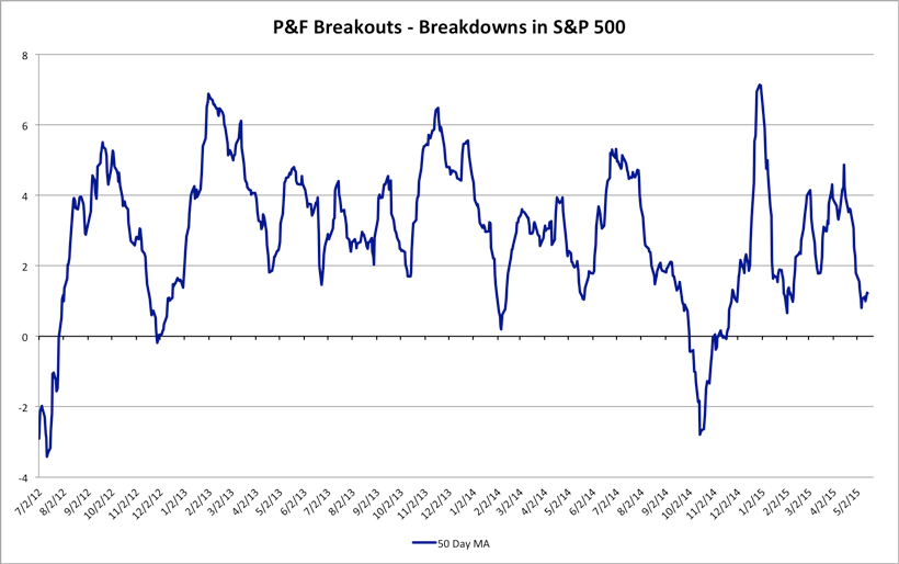 US Industry Sectors Charts & Relative Performance Rankings - isatrader - 2015-05-17 Attached are the updated US Major Sector Charts and relative performance table. Nasdaq Breadth Charts Update - isatrader - 2015-05-17 The Nasdaq Bullish Percent Index Nasdaq Percentage of Stocks above their 200 Day, 150 Day and 50 Day Moving Averages P&F charts Nasdaq Percentage of Stocks above their 200 Day, 150 Day and 50 Day Moving Averages line charts Nasdaq Advance Decline Line Nasdaq New Highs New Lows NYSE Market Breadth Update - isatrader - 2015-05-17 Attached is the NYSE Bullish Percent Index and the NYSE long, medium and short term moving average breadth charts. The NYSE Bullish Percent Index NYSE Percentage of Stocks above their 200 Day, 150 Day and 50 Day Moving Averages P&F charts NYSE Percentage of Stocks above their 200 Day, 150 Day and 50 Day Moving Averages line charts NYSE Advance Decline Breadth Charts - isatrader - 2015-05-17 Attached is the updated Advance Decline Breadth Charts, including the cumulative AD line, momentum index, cumulative AD volume line, 10 Day AD oscillator and the McClellan Oscillator and Summation Index. NYSE New Highs New Lows - isatrader - 2015-05-17 Attached is the NYSE New Highs / New Lows charts. S&P 500 Cumulative P&F Breakouts - Breakdowns - isatrader - 2015-05-17 Attached is the exclusive S&P 500 Cumulative P&F Breakouts - Breakdowns charts S&P 1500 MACD Breadth Charts - isatrader - 2015-05-17 Attached is the updated MACD breadth measures, which are: The short term measure is the % stocks on a Daily MACD on Buy Signal in S&P 1500 - which means the % of stocks with a MACD Histogram greater than zero. The medium term measure is the % stocks with a Daily MACD Line above the Zero Line in the S&P 1500. The long term measure is the % stocks with a Weekly MACD Line above the Zero Line in the S&P 1500. US Industry Sectors Breadth - isatrader - 2015-05-17 Below is the Percent of Stocks Above their 150 Day Moving Average in each sector. Also attached is the visual diagram of the 9 sectors and the two major exchanges that make up the sectors that shows a snapshot of the overall health of the US market and the data table of the sectors which is ordered by overall health. Note: the overall sector average moved up slightly this week at 61.78% |