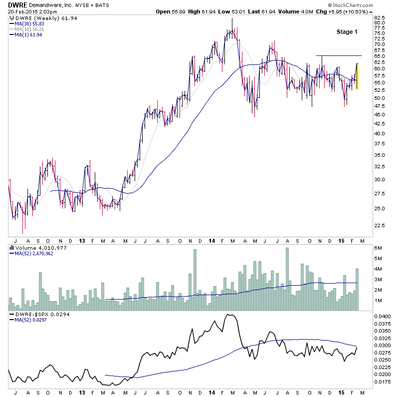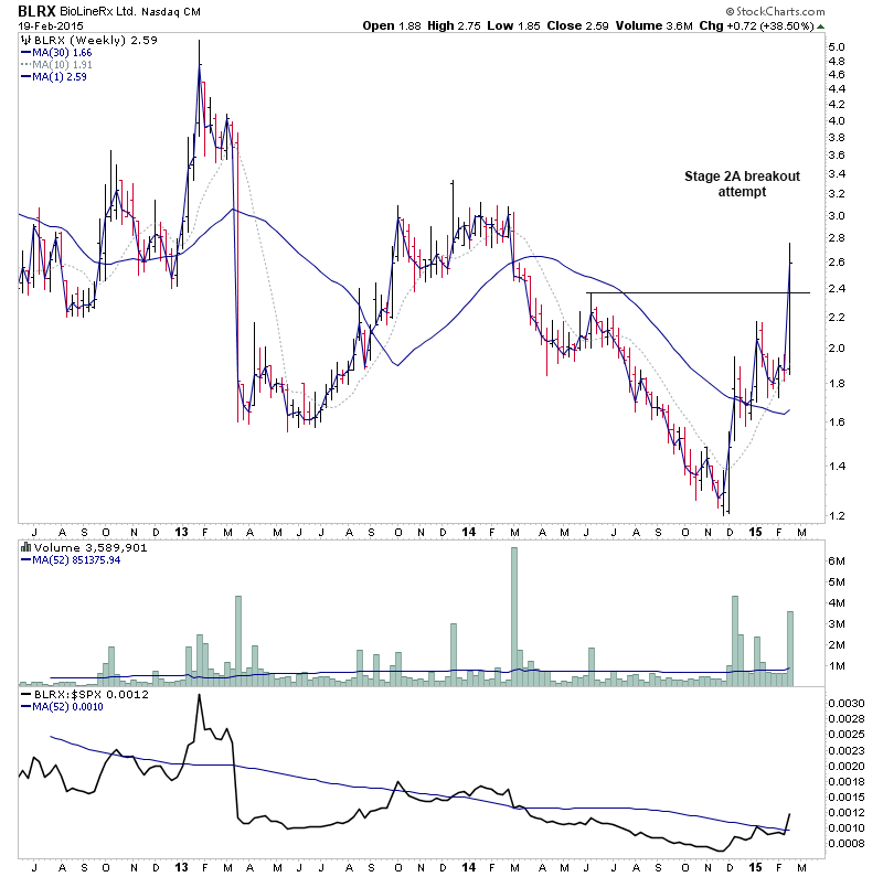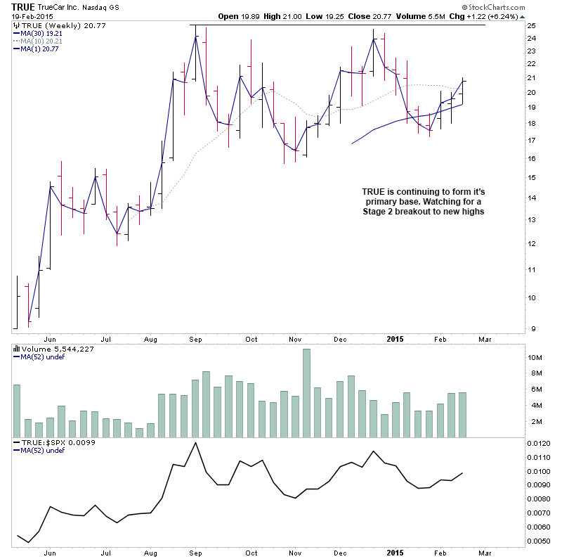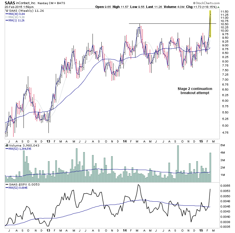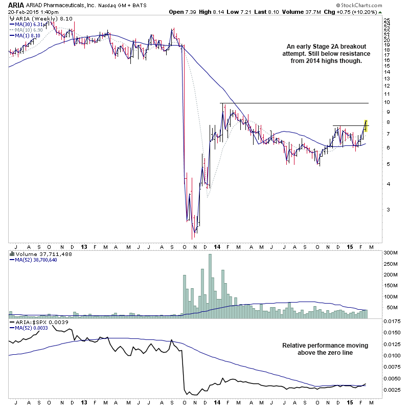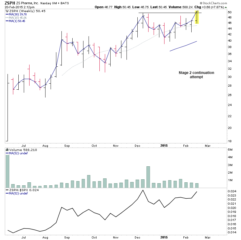 RE: US Stocks - Watchlist and Discussion (Premium) - isatrader - 2015-02-19 A few more for the US long watchlist - CRTO, PRTA, MODN, SYNT RE: US Stocks - Watchlist and Discussion (Premium) - isatrader - 2015-02-19 FB - Potential for a Stage 2 continuation RE: US Stocks - Watchlist and Discussion (Premium) - isatrader - 2015-02-20 TRUE - continuing to form it’s primary base. Watching for a Stage 2 breakout to new highs [UPDATE: 20-2-15] TRUE had a strong reversal lower on heavy relative volume today, so am taking it off the watchlist RE: US Stocks - Watchlist and Discussion (Premium) - isatrader - 2015-02-20 BLRX - single digit midget making a Stage 2A breakout attempt with large increase in relative volume and relative performance back above the zero line RE: US Stocks - Watchlist and Discussion (Premium) - isatrader - 2015-02-20 ARIA - An early Stage 2A breakout attempt, but is still below resistance from 2014 highs currently. Relative performance is moving above the zero line. RE: US Stocks - Watchlist and Discussion (Premium) - isatrader - 2015-02-20 TSRO - Attempting to make it’s initial Stage 2 continuation breakout RE: US Stocks - Watchlist and Discussion (Premium) - isatrader - 2015-02-20 Here's a few more for the US long watchlist form the intraday scans - EGL, GRUB, SAAS, LLNW, EIG, AVID, DWRE (Stage 1) RE: US Stocks - Watchlist and Discussion (Premium) - isatrader - 2015-02-20 ZSPH - Stage 2 continuation attempt for this fairly recent listing |
