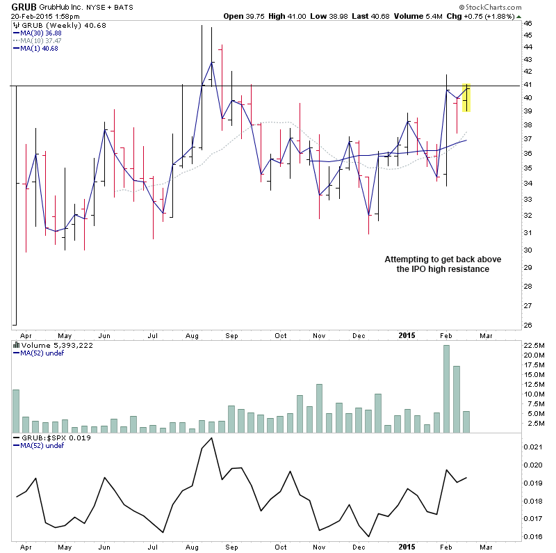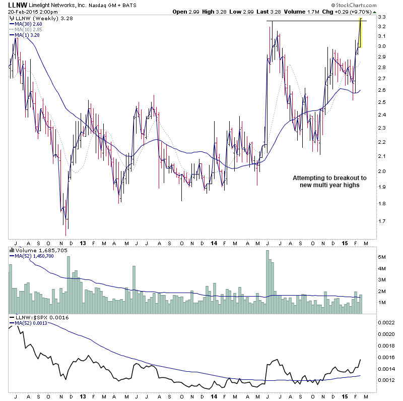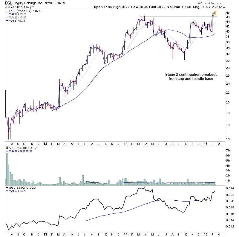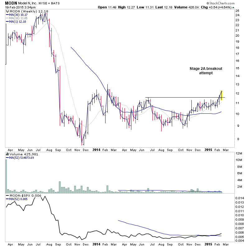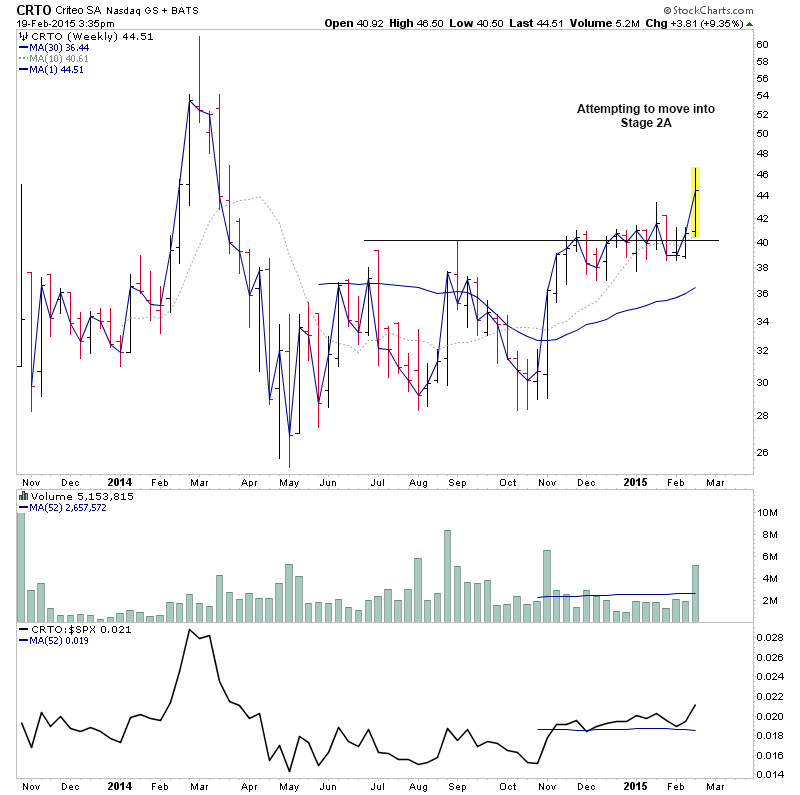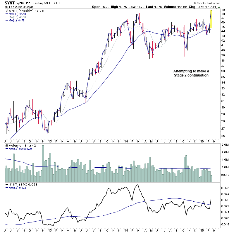 RE: US Stocks - Watchlist and Discussion (Premium) - isatrader - 2015-02-19 A few more for the US long watchlist - CRTO, PRTA, MODN, SYNT RE: US Stocks - Watchlist and Discussion (Premium) - isatrader - 2015-02-19 FB - Potential for a Stage 2 continuation RE: US Stocks - Watchlist and Discussion (Premium) - isatrader - 2015-02-20 TRUE - continuing to form it’s primary base. Watching for a Stage 2 breakout to new highs [UPDATE: 20-2-15] TRUE had a strong reversal lower on heavy relative volume today, so am taking it off the watchlist RE: US Stocks - Watchlist and Discussion (Premium) - isatrader - 2015-02-20 BLRX - single digit midget making a Stage 2A breakout attempt with large increase in relative volume and relative performance back above the zero line RE: US Stocks - Watchlist and Discussion (Premium) - isatrader - 2015-02-20 ARIA - An early Stage 2A breakout attempt, but is still below resistance from 2014 highs currently. Relative performance is moving above the zero line. RE: US Stocks - Watchlist and Discussion (Premium) - isatrader - 2015-02-20 TSRO - Attempting to make it’s initial Stage 2 continuation breakout RE: US Stocks - Watchlist and Discussion (Premium) - isatrader - 2015-02-20 Here's a few more for the US long watchlist form the intraday scans - EGL, GRUB, SAAS, LLNW, EIG, AVID, DWRE (Stage 1) RE: US Stocks - Watchlist and Discussion (Premium) - isatrader - 2015-02-20 ZSPH - Stage 2 continuation attempt for this fairly recent listing |