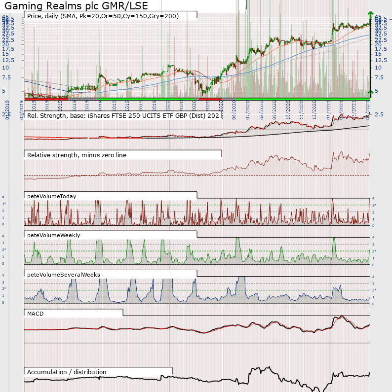 RE: UK Stocks and ETFs - Watchlist and Discussion - Sartois - 2021-02-26 Yes, things are so choppy anyway, personally I wouldn't consider buying at the moment. I'm sure more skillled people are still making money, but that's not me (yet). RE: UK Stocks and ETFs - Watchlist and Discussion - pcabc - 2021-04-04 EKF: GMR: RE: UK Stocks and ETFs - Watchlist and Discussion - pcabc - 2021-04-18 CAPC.L & CSP.L: RE: UK Stocks and ETFs - Watchlist and Discussion - DineshKonde - 2021-04-24 ETFs are normally set up as either income or accumulation. Income ETFs pay out dividends to holders as cash. Accumulation ETFs do not pay a dividend. RE: UK Stocks and ETFs - Watchlist and Discussion - pcabc - 2021-04-25 Zoo has broken out: RE: UK Stocks and ETFs - Watchlist and Discussion - pcabc - 2021-04-27 Some breakouts: AIGA: Broken out a while back showing a trend for non-precious metal commodities. COPA: Note, the industreial metals are breaking out or already on an uptrend. EBOX: MGNS: PIMT: STCM: SYNT: RE: UK Stocks and ETFs - Watchlist and Discussion - pcabc - 2021-05-18 OXB, breakout today on strong volume: Note, I have amended my volume plots. The feint red and green bars and the smaller stronger red and green bars are the same data, but one is plotted on 10x the scale of the other. I found that I generally need the zoomed in volume, but on strong days such a chart would clip, hence the second scale overlaid. RE: UK Stocks and ETFs - Watchlist and Discussion - Boggers - 2021-05-23 (2021-05-18, 10:33 PM)pcabc Wrote: OXB, breakout today on strong volume: Thanks as ever for your UK work. I see this has pulled back to breakout level, hopefully it will push on from here. I had to sit and watch STCM breakout and go a couple of weeks ago as I had no cash at the time. |