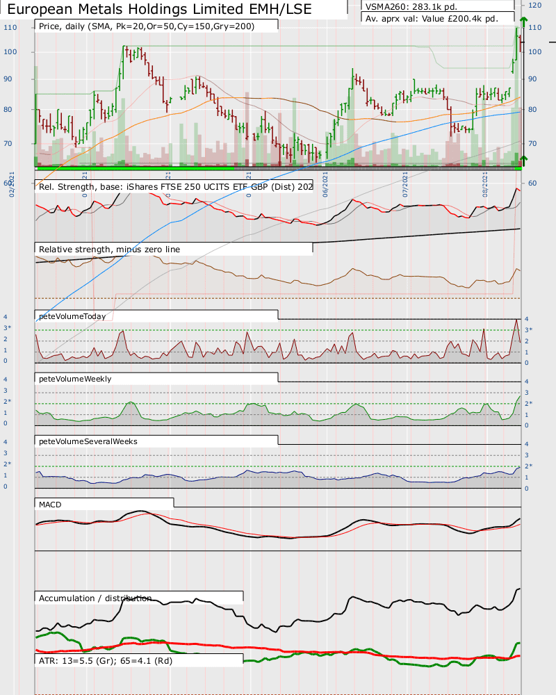 RE: UK Stocks and ETFs - Watchlist and Discussion - pcabc - 2021-06-08 PAG.L: RE: UK Stocks and ETFs - Watchlist and Discussion - collotennis - 2021-07-29 First time i post a chart in here. Going to do my best to take on board all feedback. Would I be better placing this post in beginner questions or because its related to UK its ok in here? Company: BHP group UK, Stage: stage 2 continuation. Action: would you place a buy stop above the resistance now or just wait for a close above resistance and place a buy stop then? Also because it's the UK exchange, I replaced the s&P 500 with the UK 100 index, is that common to do? appreciate your feedback, RE: UK Stocks and ETFs - Watchlist and Discussion - pcabc - 2021-07-30 (2021-07-29, 01:45 PM)collotennis Wrote: First time i post a chart in here. Going to do my best to take on board all feedback. Firstly, the order type. As far as I have found few accounts, unless going for CFD or spreadbet, have buy stop limit orders as per the stage analysis book which limits their availability. As for the exchange, to me that makes sense. But you could consider perhaps the FTSE250 as the FTSE100 has a lot of multinationals. But it is a personal preference. But always worth considering the relative strength of the US and UK markets. But if you look at the US you need to consider forex charges, order types and stock availability. RE: UK Stocks and ETFs - Watchlist and Discussion - pcabc - 2021-08-01 KNOS.L: This one has good volume but looks like it is a 2nd or 3rd continuation. Looking at the chart history, though on the 6 month chart it looks like a good continuation breakout I'm wondering from the 2y chart whether this one will just pull back to the MA even if it does appear to breakout for a few days? GAW.L Games Workshop - isatrader - 2021-08-10 GAW.L Games Workshop continuing to tighten up in Stage 1 after basing over the last year. RE: UK Stocks and ETFs - Watchlist and Discussion - pcabc - 2021-08-15 SVS.L, SCP.L & EMH.L: Worth noting that SCP is a FTSE Midcap ETF. RE: UK Stocks and ETFs - Watchlist and Discussion - techwormi - 2021-08-20 Trader method watchlist - CMIP.L, NETD.L, ETQ.L, SIV.L, JFJ.L, SCPA.L, COMS.L, BKIR.L, MBT.L Can you share time frame anaysis too with it, INDFX RE: UK Stocks and ETFs - Watchlist and Discussion - pcabc - 2021-08-21 (2021-08-20, 09:48 AM)techwormi Wrote: Trader method watchlist - CMIP.L, NETD.L, ETQ.L, SIV.L, JFJ.L, SCPA.L, COMS.L, BKIR.L, MBT.L For some of these stocks I'm not seeing all these symbols in my data nor when I look on a brokers website like Hargraves Lansdown, BKIR.L, MBT, ETQ.L for example. That can happen with some very small cap stocks. However, looking at them SCPA.L, for example, has no data after April this year, it was taken over by another company. JFJ.L is an investment trust. There is a breakout level there, but at present it is below its 150 day moving average so is not suitable. Whether it would give a suitable volume signal is debatable. MBT.L is too thinly traded to be of interest, my rough calculations indicate it is trading around £6500 per day on average, but this fluctutes wildly, so this number is imprecise but what is important is it is too small. There is no volume on some days. So if you try to buy or sell a position in this, no matter how small you may influence the market yourself, you may not get the outcome you want. There will be a wide spread, which is around 12% at present. Again this one is is below a falling 150 day MA. How do you screen for these? |