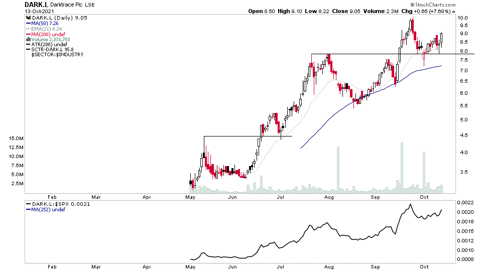 DARK.L Darktrace - isatrader - 2021-10-13 DARK.L Darktrace UK Cybersecurity firm with strong year-over-year revenue growth of between 37% and 39% RE: UK Stocks and ETFs - Watchlist and Discussion - KalkineMedia - 2021-10-21 I find this thread really interesting. Investing in UK stocks needs more attention and research for investment. Currently some betting and gaming stocks are also trading such as(news source:kalkinemedia): Entain Plc (LON: ENT), 888 Holdings Plc (LON: 888), Flutter Entertainment Plc (LON: FLTR) RE: UK Stocks and ETFs - Watchlist and Discussion - pcabc - 2021-10-21 (2021-10-21, 09:57 AM)KalkineMedia Wrote: I find this thread really interesting. Investing in UK stocks needs more attention and research for investment. Currently some betting and gaming stocks are also trading such as(news source:kalkinemedia): Entain Plc (LON: ENT), 888 Holdings Plc (LON: 888), Flutter Entertainment Plc (LON: FLTR) I calculate my own UK market breadth data as such data is harder to come by. Two other things have in recent years worked against the UK, the UK markets have lagged the US ones for some year and secondly, event though the UK is a large market the US one is so much larger you have a better chance of finding a suitable position to open. UK Bank stocks - isatrader - 2022-01-11 It's not just US bank stocks moving into Stage 2 last week. HSBA.L (HSBC Holdings) broke out into Stage 2A from a big Stage 1 base. Average volume though. RE: UK Bank stocks - pcabc - 2022-01-12 (2022-01-11, 10:52 PM)isatrader Wrote: It's not just US bank stocks moving into Stage 2 last week. HSBA.L (HSBC Holdings) broke out into Stage 2A from a big Stage 1 base. Average volume though. Like the other large banks - is it really a UK business, its HQ and one of its listings is in the UK? This raises an interesting question of how strong the relevence of UK market breadth is to such a stock? RE: UK Bank stocks - isatrader - 2022-01-12 (2022-01-12, 12:47 AM)pcabc Wrote: Like the other large banks - is it really a UK business, its HQ and one of its listings is in the UK? This raises an interesting question of how strong the relevence of UK market breadth is to such a stock? Yeah I appreciate it's a global business. I was more referring to it as a UK bank based on high street presence, like Barclays, Lloyds etc, and its primary stock market listing being in the UK. As only appears on the US market (HSBC ticker) as an ADR. I think UK breadth is likely less relevant to stock that is global, versus something that only operates in the UK. BHP.L Stage 2 breakout attempt - isatrader - 2022-01-13 BHP.L Stage 2 breakout attempt to new highs RE: UK Stocks and ETFs - Watchlist and Discussion - pcabc - 2022-02-05 I3E Breakout on high volume: |