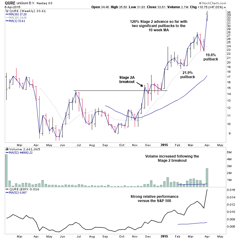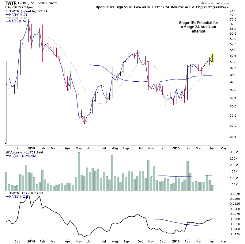 RE: US Stocks - Watchlist and Discussion (Premium) - isatrader - 2015-04-06 YZC - Stage 1B. Possibility of another Stage 2A breakout attempt RE: Investor Method Watchlist - isatrader - 2015-04-06 QURE came up on my scanner again today and I remembered highlighting in November last year when it just breaking out into Stage 2A from it's primary base. http://stageanalysis.net/forum/showthread.php?tid=15&pid=6100#pid6100 It's had an excellent Stage 2 advance, up over 126% currently since then with two significant pullbacks to the 10 week MA along the way. So I thought it would be a good example to show as highlights the kind of pullbacks you have to sit through to hold onto a powerful Stage 2 advance. Note the volume contraction on the two pullbacks before increasing again on each breakout. Attached below is the current and original chart that was highlighted in the Elite Board on 26th Nov 14. RE: US Stocks - Watchlist and Discussion (Premium) - isatrader - 2015-04-06 ATHM - Potential for a breakout attempt from the large primary base RE: US Stocks - Watchlist and Discussion (Premium) - isatrader - 2015-04-07 TWTR - Stage 1B. Potential for a Stage 2A breakout attempt Disclosure: I've had a long position in TWTR since 5th Feb 2015 RE: US Stocks - Watchlist and Discussion (Premium) - isatrader - 2015-04-07 MIFI - Potential for a Stage 2 continuation Disclosure: I've had a long position in TWTR since 14th Jan 2015 RE: US Stocks - Watchlist and Discussion (Premium) - isatrader - 2015-04-07 A few for the US long watchlist - CUDA, AXTA, AGRX RE: US Stocks - Watchlist and Discussion (Premium) - isatrader - 2015-04-08 SIMO - Potential for a Stage 2 continuation RE: US Stocks - Watchlist and Discussion (Premium) - isatrader - 2015-04-08 A few for the US long watchlist tonight - MYCC, SMI, CCO |