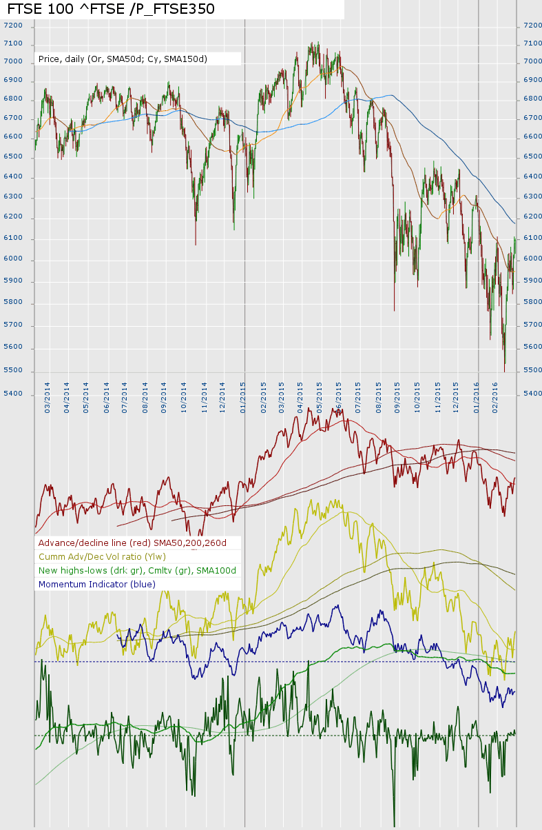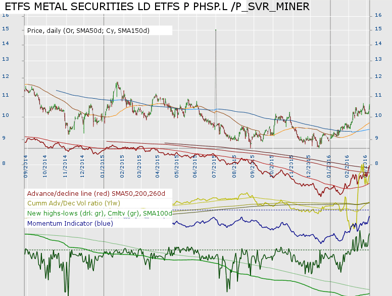 RE: Stan Weinstein's Stage Analysis - pcabc - 2016-02-27 (2016-02-27, 12:44 PM)isatrader Wrote:(2016-02-27, 12:26 PM)pcabc Wrote: Hmm, is that a bull trap or are we getting hints of a change in direction? Thanks. I've got positions several of short ETFs. Unfortunately though they have moved far the the investor stop loss positions IMHO have generally not moved from their initial positions. I could pick trader stop losses (flipping between trader and investor?!) but even then there are not good clear stop loss positions nor have clear trendlines formed. Maybe one for a blog post. I'm obviously concerned about giving away more of my gains (or recouped losses, than necessary) whilst knowing that too tight stop losses don't do you any good. RE: Stan Weinstein's Stage Analysis - pcabc - 2016-03-03 Market breadth US: UK: Note, I've recalculated the breadth data as unbeknownst to myself my database had been deleting stocks that I had not viewed in the last 6 months. That might have skewed the data. However, suspect differences are small. Gold: RE: Stan Weinstein's Stage Analysis - shaunattwood - 2016-03-03 PCABC just read about your shorts, I urge you to add the MACD to your timing tools, look at this graph http://stockcharts.com/h-sc/ui?s=indu the short sale bearish crossover was in November, and the bullish crossover to close out shorts was in January, now it's racing up again, the shorts will be squeezed out, MACD will cross over bearishly again soon, and that is the re-short signal, I'm mostly in cash awaiting that signal RE: Stan Weinstein's Stage Analysis - pcabc - 2016-03-03 (2016-03-03, 09:59 PM)shaunattwood Wrote: PCABC just read about your shorts, I urge you to add the MACD to your timing tools, look at this graph http://stockcharts.com/h-sc/ui?s=indu the short sale bearish crossover was in November, and the bullish crossover to close out shorts was in January, now it's racing up again, the shorts will be squeezed out, MACD will cross over bearishly again soon, and that is the re-short signal, I'm mostly in cash awaiting that signal Thanks. I've pulled up the stop losses and am looking at whether they penetrate the MA150d - which some are very close to. Over February I've made some good gains, but yes, some are slightly in the red and some now have smaller gains. Do you use the MACD alone or in conjunction with stage analysis? According to the chart you linked Nov, from a Stage analysis perspective would not be a good time to short owing to being above the MA. Rather breaking below 17000 in the first week of Jan would make sense. The shape of short index ETFs does look a little more tricky. RE: Stan Weinstein's Stage Analysis - pcabc - 2016-03-05 Having read elsewhere about silver I've calculated a breadth chart based on a pool of miners. I've had issues with my calculations before so be wary of this data. RE: Stan Weinstein's Stage Analysis - shaunattwood - 2016-03-05 PCABC, As far as I'm concerned, we are in a bear market rally. these rallies often take individual shares and some indices above the hundred and fifty day MA, but as long as the slope of the major indices is down, I'm not concerned by minor violations. The problem with being short in a bear market is that the rallies are long and protracted, shares actually spend more days going up, and the falls are sudden and steep. I use the MACD in conjunction with everything else. It doesn't work so good in a bull markets, but if you go back to the previous bear market of 2008, it worked like a charm, and it's been 100% accurate in the present bear market. As soon as it rolls over and crosses - from I predict around the 200 line - I'm massively going to increase my shorts. When it reverses again and crosses from way below the zero line, I'll be closing out my shorts. Relative Performance Charts of Gold, Silver, Copper and Crude Oil - isatrader - 2016-03-05 Relative performance is one of the four key components of Weinstein's method, and can be used to make sure you are focused on the right area of the market at the right time. As not all Stage 2 advances are created equal, hence, you need to focus on the areas showing the strongest relative performance in order to get onboard the best Stage 2 advances. So with the strength coming back into precious metals and some commodities over the last few months I wanted to show different relative performance charts for Gold, Silver, Copper and Crude Oil to give an idea where we stand currently with each one, and whether any are on or close to a buy signal versus the S&P 500 market. Gold - the weekly relative performance chart made a Stage 2A breakout in early February. The monthly relative performance chart closed back above it's 30 month MA for the first time in four years in February. And the 3% relative performance P&F chart had it's first double top breakout signal in February in four years, putting the P&F relative performance back on a buy signal. Silver - the weekly relative performance chart made a Stage 2A breakout in early February, but immediately reversed and pulled back to the 30 week MA over the last three weeks, where it rebounded this week. So still Stage 1 on the weekly relative performance chart. On the monthly relative performance chart the move since the November bottom has given it it's first higher high since 2011, but it's still a fair way below it's declining 30 month MA currently. The 3% relative performance P&F chart has been basing for the last two years, and made it's second double top breakout in February, following a failed breakout in 2014, but it has pulled back below in a column of Os, and so is on a weak relative performance buy signal currently, and needs to make a further double top breakout to confirm the relative performance buy signal. Copper - the weekly relative performance chart has moved into early Stage 1, following it's most recent bottom in November. The monthly relative performance chart shows a strong bounce, but it's still in Stage 4B, and is s