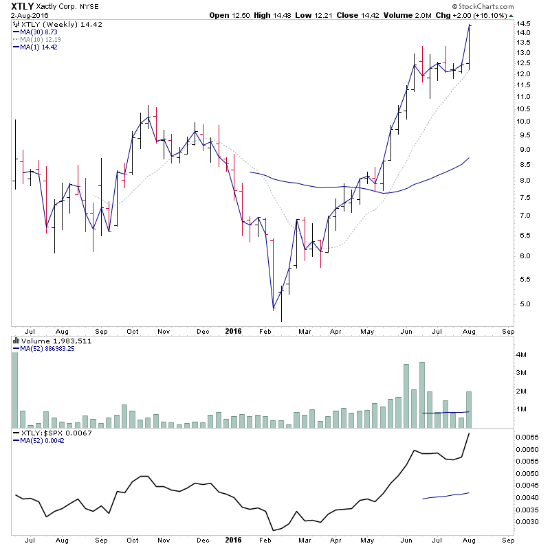 RE: US Stocks - Watchlist and Discussion - kero - 2016-07-31 RE: US Stocks - Watchlist and Discussion - isatrader - 2016-08-02 AMRN - heavy relative volume the last few days as it's breaks out into early Stage 2. Monthly chart shows potential, and the 2 hour chart shows the volume surge. RE: US Stocks - Watchlist and Discussion - isatrader - 2016-08-03 A bunch of interesting Stage 1 and 2 stocks today on the more than 3x daily average volume scan. A number of health care stocks popping up on the scan too today. XXII (Stage 1), ADXS, AMKR, BZUN (Stage 1B), CZR (Stage 1), ETSY, NLS, SODA, SRI, XTLY RE: US Stocks - Watchlist and Discussion - odlareg - 2016-08-03 hello Isa, I did a bit of investigation into this list. Most of them run into young or old resistence. Definitely on my buy list for today is XTLY. Will not be surprised if it will hit 19 dollar after a while. AMRN i wait for retracement. RE: US Stocks - Watchlist and Discussion - isatrader - 2016-08-03 (2016-08-03, 07:56 AM)odlareg Wrote: hello Isa, I did a bit of investigation into this list. Most of them run into young or old resistence. Definitely on my buy list for today is XTLY. Will not be surprised if it will hit 19 dollar after a while. AMRN i wait for retracement. Yes, quite a few have resistance still, obviously especially the Stage 1 stocks which will aways still be under long term resistance. So when I post stocks on the watchlist, I'm not suggesting that they are at a buy point unless I specially say, but simply they are shaping up and could be ones to watch. XTLY did go through a buy point yesterday, but moved strongly higher, and so you need to be aware that it's already 7% above that level, and so a hard one to get into now as a trader stop would go under 11.5 imo, which is -20%, and hence you'd need to be looking for a 60%+ move for the 3 to 1 reward to risk ratio the trader method looks for. Here's the more detailed charts of XTLY. RE: US Stocks - Watchlist and Discussion - kero - 2016-08-04 Omega Healthcare investors looks interesting. Sectors are Real Estate/Healtcare Eq.&Serv., which are both strong. Looks as the stock is going to breakout, with increasing volume. The RS of the stock is the only problem. It has been bear for some time. But the RS also look as being in the process of breaking out its resistance. RE: US Stocks - Watchlist and Discussion - isatrader - 2016-08-04 (2016-08-04, 10:27 AM)kero Wrote: Omega Healthcare investors looks interesting. Sectors are Real Estate/Healtcare Eq.&Serv., which are both strong. Looks as the stock is going to breakout, with increasing volume. It's already broken out into Stage 2A on the dividend and split adjusted charts that stockcharts.com use. Volume was only a little above average though, and RS is quite flat. The Prorealtime software uses unadjusted charts, so you can miss the breakout point with those charts. RE: US Stocks - Watchlist and Discussion - kero - 2016-08-04 Actually, ProRealTime also uses dividend adjusted charts (as configurable option), but I disable the option. That's a point about which I'm thinking since a lot because I'm unsure about my position. I've already considered that dividend adjusted charts give a distorted view of the price actions, specially because support/resistance which are seen on charts doesn't reflect the real moves, hence it distorts the "price memory", which looks essential to me to define relevant levels. Also, I suppose that Weinstein used non adjusted charts in his book, which are a quite modern feature (but maybee he would have, if he could ?) Another problem I see with adjusted charts is that their precision depends from the available information that the charts editors have. Sometimes, I have seen that a dividend has been detached, but the stock charts doesn't reflect it, probably because lack/forgot of information. Hence, having a simple rule (only using unadjusted charts) makes it simpler. All charts are drawn in the same way. I'd be interested in your opinion. You consider that adjusted charts work better for Weinstein method ? |