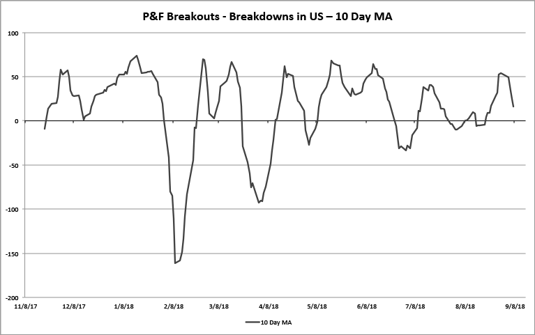 Cumulative P&F Breakouts - Breakdowns custom Breadth charts - isatrader - 2018-09-01 Attached is my updated custom breadth charts that I do based on the daily point and figure double top breakouts and double bottom breakdowns. Totals for the week: +318 double top breakouts -98 double bottom breakdowns +220 net breakouts Major US Monthly Charts - isatrader - 2018-09-01 Attached is the monthly US stock indexes charts, for a look at the bigger picture. Major US Stock Indexes Update - NYSE, Nasdaq, S&P 500, DJIA & S&P 600 small caps - isatrader - 2018-09-01 Here's the overview charts of the US Bullish Percent and Moving Average Breadth. RE: Stan Weinstein's Stage Analysis - grbaNT - 2018-09-02 Attached are the updated charts of the RABWDB Indicator, Individual Phases, SP500 RABWDB, SP400 RABWDB and SP600 RABWDB. Quick description of the indicator: Sample is the same as for the Survey (2287 stocks). Stock classification is done as per Chuck Dukas's TrendAdvisor Diamond described in his book (see attached TrendAdvisor Diamond). Stocks in bullish, accumulation and recovery phases are considered healthy and cumulatively plotted as an oscillator, same as in the Survey. Those in warning, distribution and bearish phases are considered technically unhealthy. RE: Stan Weinstein's Stage Analysis - grbaNT - 2018-09-02 Attached are the updated charts of the US Stock Market Survey Indicator, Individual Stages, SP500 Survey, SP400 Survey and SP600 Survey. If you want to read my commentary, please go to https://dg-swingtrading.blogspot.com/search/label/Market%20Breadth To learn more about the indicator go to https://dg-swingtrading.blogspot.com/2018/02/stan-weinsteins-us-stock-market-survey.html RE: Stan Weinstein's Stage Analysis - grbaNT - 2018-09-08 Attached are the updated charts of the RABWDB Indicator, Individual Phases, SP500 RABWDB, SP400 RABWDB and SP600 RABWDB. Quick description of the indicator: Sample is the same as for the Survey (2287 stocks). Stock classification is done as per Chuck Dukas's TrendAdvisor Diamond described in his book (see attached TrendAdvisor Diamond). Stocks in bullish, accumulation and recovery phases are considered healthy and cumulatively plotted as an oscillator, same as in the Survey. Those in warning, distribution and bearish phases are considered technically unhealthy. RE: Stan Weinstein's Stage Analysis - grbaNT - 2018-09-08 Attached are the updated charts of the US Stock Market Survey Indicator, Individual Stages, SP500 Survey, SP400 Survey and SP600 Survey. If you want to read my commentary, please go to https://dg-swingtrading.blogspot.com/search/label/Market%20Breadth To learn more about the indicator go to https://dg-swingtrading.blogspot.com/2018/02/stan-weinsteins-us-stock-market-survey.html RE: Cumulative P&F Breakouts - Breakdowns custom Breadth charts - isatrader - 2018-09-08 Attached is my updated custom breadth charts that I do based on the daily point and figure double top breakouts and double bottom breakdowns. Totals for the week: +155 double top breakouts -266 double bottom breakdowns -111 net breakdowns |