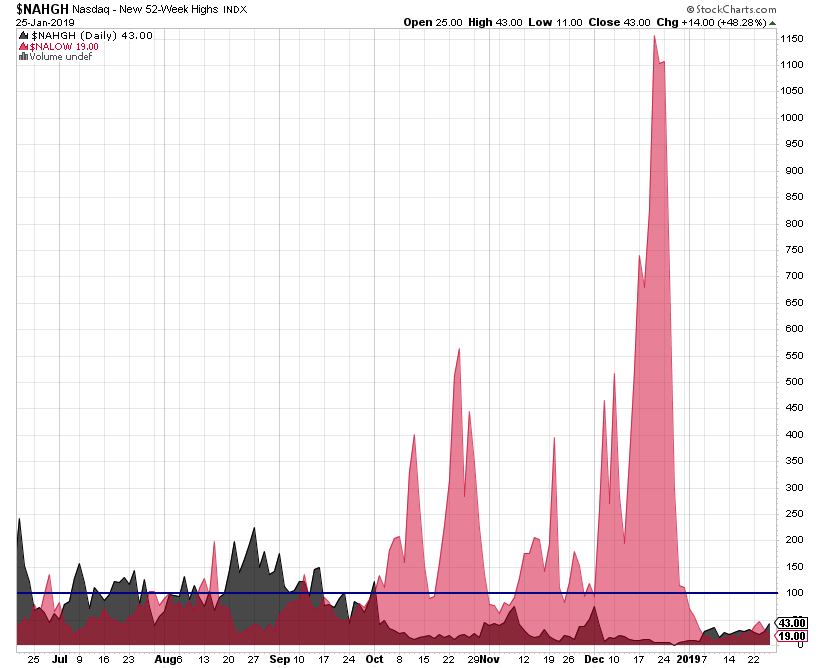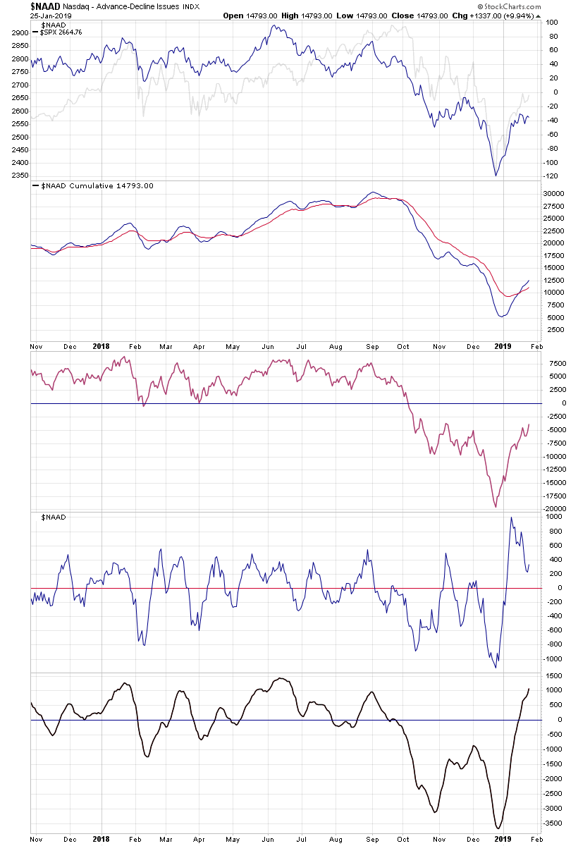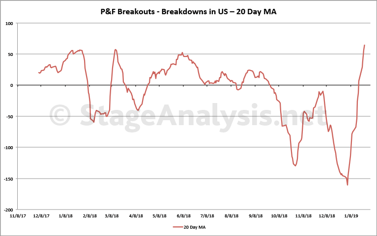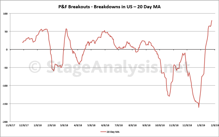 Cumulative P&F Breakouts - Breakdowns custom Breadth charts - isatrader - 2019-01-27 Attached is my updated custom breadth charts that I do based on the daily point and figure double top breakouts and double bottom breakdowns. Totals for the week: +266 double top breakouts -107 double bottom breakdowns +159 net breakouts - breakdowns Advance Decline Charts and US New Highs New Lows - isatrader - 2019-01-27 Attached is the updated NYSE and Nasdaq Advance Decline Breadth Charts, including the cumulative AD line, momentum index, cumulative AD volume line, 10 Day AD oscillator and the McClellan Oscillator and Summation Index. Attached is the updated US New Highs - New Lows Charts US Sectors - Percent of Stocks Above their 150 Day Moving Average - isatrader - 2019-01-27 Below is the Percent of Stocks Above their 150 Day Moving Average table in each sector, which is ordered by overall health. Also attached is the visual diagram of the 9 sectors and the two major exchanges that make up the sectors that shows a snapshot of the overall health of the US market. Note: the overall sector average is at 35.7% currently and gained +1.06% since last week, with financials, consumer staples and industrials having the largest gains. Major US Stock Indexes Update - NYSE, Nasdaq, S&P 500, DJIA & S&P 600 small caps - isatrader - 2019-02-02 Here's the weekly overview charts of the NYSE, Nasdaq, S&P 500, DJIA & S&P 600 small caps with their US Bullish Percent and Moving Average Breadth. Cumulative P&F Breakouts - Breakdowns custom Breadth charts - isatrader - 2019-02-02 Attached is my updated custom breadth charts that I do based on the daily point and figure double top breakouts and double bottom breakdowns. Totals for the week: +542 double top breakouts -123 double bottom breakdowns +419 net breakouts - breakdowns RE: Stan Weinstein's Stage Analysis - grbaNT - 2019-02-03 Attached are the updated charts of the RABWDB Indicator, Individual Phases, SP500 RABWDB, SP400 RABWDB and SP600 RABWDB. To learn more about the indicator go to https://dg-swingtrading.blogspot.com/search/label/RABWDB RE: Stan Weinstein's Stage Analysis - grbaNT - 2019-02-03 Attached are the updated charts of the US Stock Market Survey Indicator, Individual Stages, SP500 Survey, SP400 Survey and SP600 Survey. If you want to read my commentary, please go to https://dg-swingtrading.blogspot.com/search/label/The%20Survey To learn more about the indicator go to https://dg-swingtrading.blogspot.com/p/market-breadth_20.html Advance Decline Charts and US New Highs New Lows - isatrader - 2019-02-03 Attached is the updated NYSE and Nasdaq Advance Decline Breadth Charts, including the cumulative AD line, momentum index, cumulative AD volume line, 10 Day AD oscillator and the McClellan Oscillator and Summation Index. Attached is the updated US New Highs - New Lows Charts |